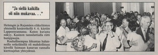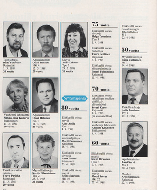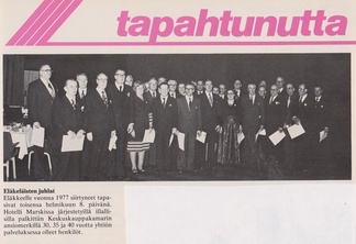 Edellisenä vuonna eläkkeelle jääneet oli kutsuttu yöukuntiin Hotelli Marskiin. Kutsuttuja oli 117 ja paikalle Helsinkiin ehti 80 eläkeläistä.