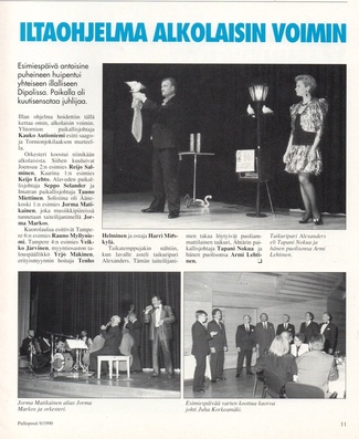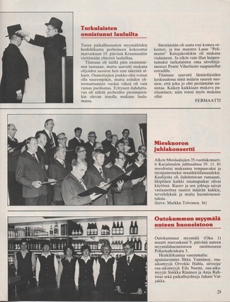 "Kokouksen päätteeksi saatiin nauttia suurenmoisista lauluesityksistä, joita esittivät Alkon Mieslaulajien kuoro johtajanaan Auvo Nuotio ja säestäjänä George de Godzinsky."