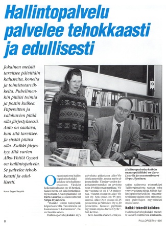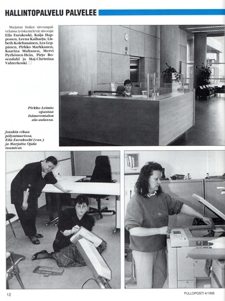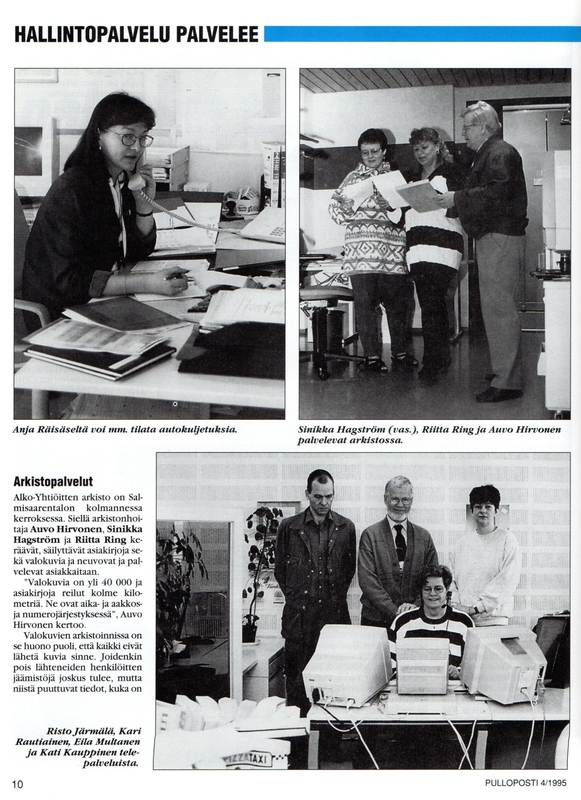 Hallintopalveluyksikkö oli Eero Laurilan johtama putiikki. Yksikön toimenkuva oli moninainen. Kalusteita, toimistotarvikkeita, postin kulkua, papereiden ja valokuvien järjestelyä, auton hommaamista ja siivousta. Puuhaa riitti 46 alkolaiselle. Kaikki tekivät kaikkea.