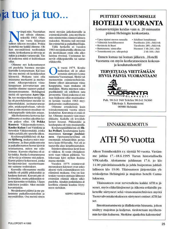 ATH täytti 50 vuotta ja ilmoitteli ennakkoon Turun VPK:n talolla järjestettävistä synttärijuhlistaan. Mukaan kutsuttiin myös eläkeläiset, pakettilaiset sekä Tuotevalvontakeskukseen siirretyt entiset ATH:laiset.