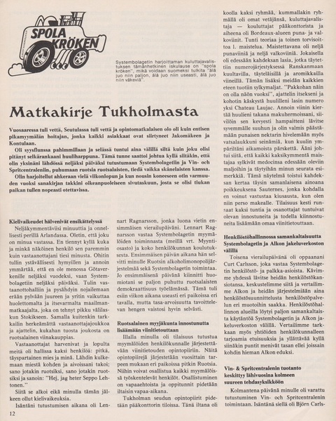 Lukekaa ihmeessä tämä Seppo Lehtosen värikäs raportti tutustumismatkasta "Ruotsin Alkoon"!