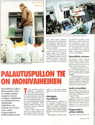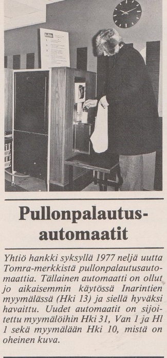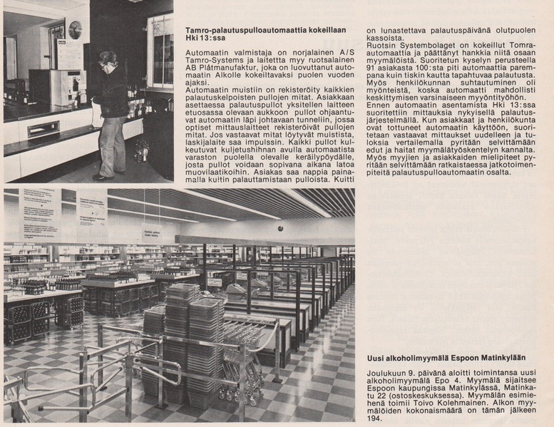 Alkolle luovutettiin puolen vuoden ajaksi kokeiltavaksi palautuspulloautomaatti. 91 asiakasta 100:sta piti automaattia parempana kuin tiskin kautta tapahtuvaa palautusta.