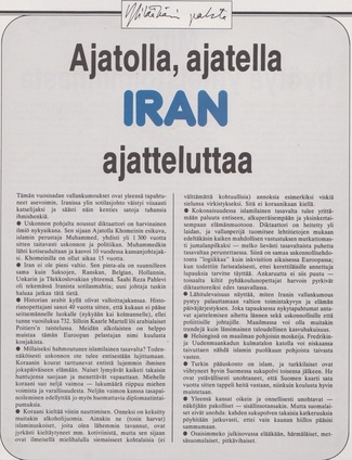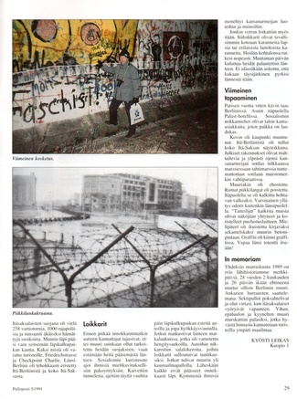 Tämän lehden kansikuvan oli kuvannut Irja Joenpolvi. Kuvatekstiksi oli valittu Stanislaw Jerzy Lecin mietelause "Vastakarvaan"