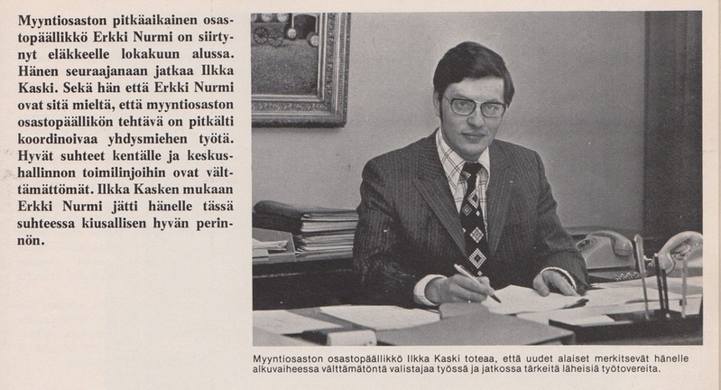Myyntiosastolla tapahtui vahdinvaihto. Erkki Nurmi jäi eläkkeelle ja tilalle tuli Ilkka Kaski.
