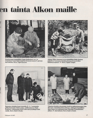Hieman epäuskottavalta näyttää perunapeltokuva. Istuttajien joukkoon oli tälläytynyt ilmeisesti pääkonttorin väkeä nappaskengät jalassa ja kravatit kaulassa.