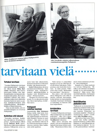 Pullopostin toimitus oli kuulostellut lukijoiden mielipiteitä lehden tarpeellisuudesta. Kaikki vastasivat liikuttavan yksimielisesti, että Pullopostia tarvitaan yhä. Kaupan A3 ja Primetime ovat vain korvikkeita, joita ei juuri tule luettua.