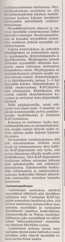 "Nyt kun on saatu oikea määrä tuotteita hyllyyn ja järjestys tuoteryhmien sisällä asiakkaiden enmmistön kannalta optimaaliseksi, voimme siirtyä seuraavaan vaiheeseen. Aletaan selvittämään asiakkaiden ostokäyttäytymistä" sanoi Peltolan Jomppe.