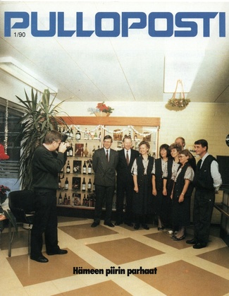 Yli 30 vuotta Alkoa palvellut Jallu K. Koski oli ottanut paketin. Jallu oli uransa aikana muiden töidensä ohella kuvannut valtaosan Pullopostin kansikuvista.