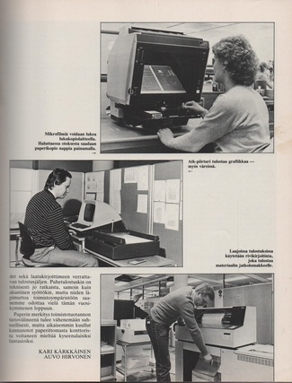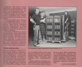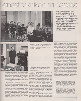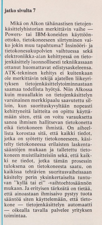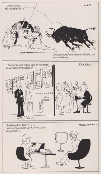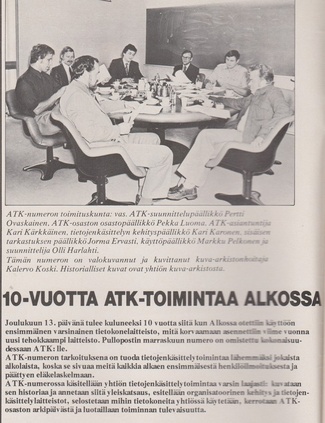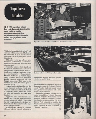 Jääkaapin kokoisia tietojenkäsittelylaitteita soviteltiin ATK-osaston konehuoneeseen. Masinat oli tuotu rekka-autolla Pariisista. Aikaisempi laitteisto oli palvellut vuodesta 1966 alkaen.