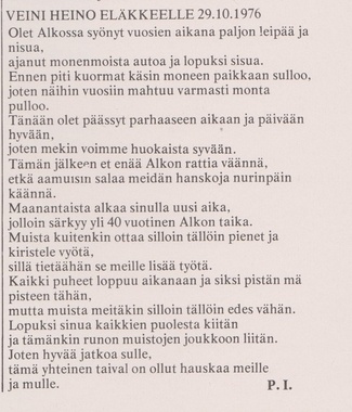Vuosi 1976 alkoi aktiivisesti. Tammikuun 20. perustettiin henkilökuntaneuvosto, jossa oli edustus kaikista Alkon henkilöstöjärjestöistä. Joukko oli massiivinen, peräti parisenkymmentä henkeä.