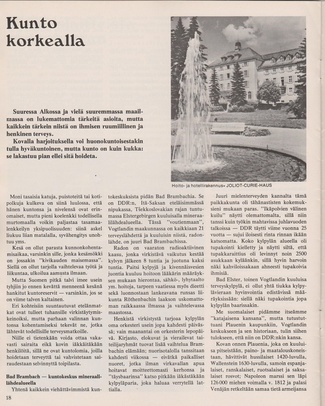 Jo vuonna 1975 eläkkeellä ollut Alkon tutkija filosofian maisteri Kerttu Suuroseen olivat DDR:n kylpylät tehneet suuren vaikutuksen. Oheisena hänen matkakertomuksensa.