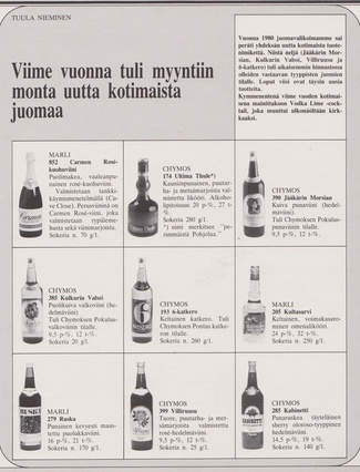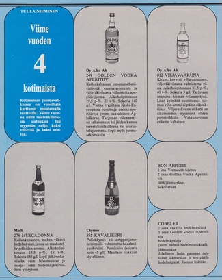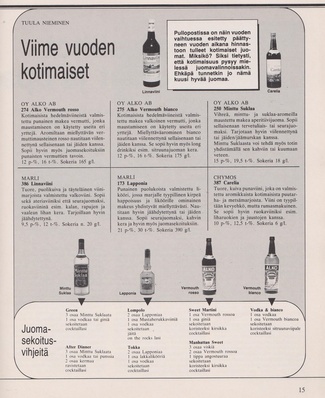 Tyrnimarjalikööri, kaksi uutta punaviiniä ja kolme valkoviiniä tuli myyntiin 1.4.1975.