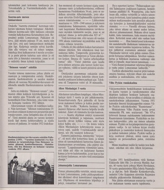 "Uuden polven alkolaiset ovat kuulleet satumaisia kertomuksia entisen Lomarannan herkkupöydistä. Tyttärestä ei ole polvi pahentunut, koska Lomarannan entinen emäntä Eva-Liisa Haatainen valmistaa nykyään herkkujaan Vuorannassa. Ei ole ainakaan pelkoa, että Vuorannan lomalla pystyisi laihtumaan."
