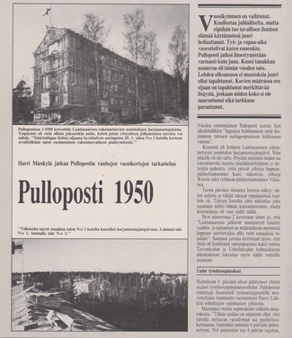 Harri Mieskylä oli tehnyt koosteen Pullopostin 50 vuodesta. Vaiherikas ja aikaansa seuraava on Pulloposti ollut koko ikänsä. Taloudelliset olot näkyivät myös Pullopostin ulkoasussa. Korkeakiiltoinen painopaperi vaihtui halvemmaksi ja värikuvat vähenivät ja lähes loppuivat.