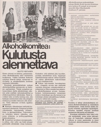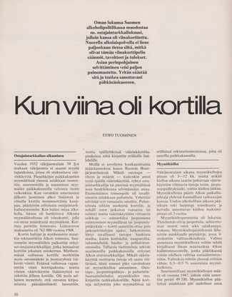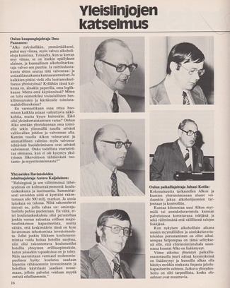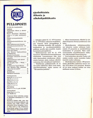 "Vuotta 1974 sävytti yleismaailmallinen kustan-nustason nousu, jonka myötä taloudellinen kehitys oli Suomessa monessa suhteessa epätyydyttävä." Alkollakin meni huonosti. Kustannukset kohosivat, eikä hintoja vuoden 1974 aikana päästy korot-tamaan. Yksikkökohtaiset myyntikatteet pienenivät. Kaiken lisäksi asiakkaat alkoivat ostaa yhä enemmän heikompikatteisia juomia kuten mietoja viinejä ja lonkeroita. Näin raportoi Kalevi Koskenkorva Pullopostissa 4/1975.