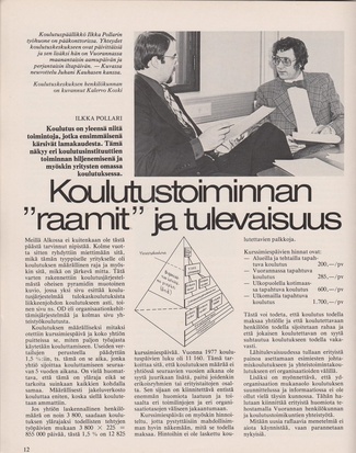 Koulutus maksoi tuohon aikaan Alkolle henkilöltä 230 mk (38,68 e) päivässä, joten ei ollut aivan samantekevää mitä sillä rahalla tehtiin.